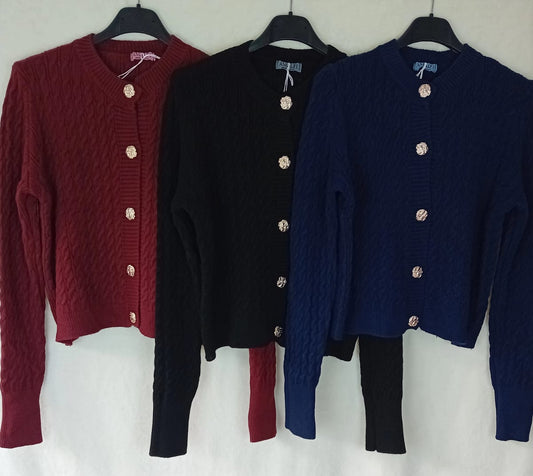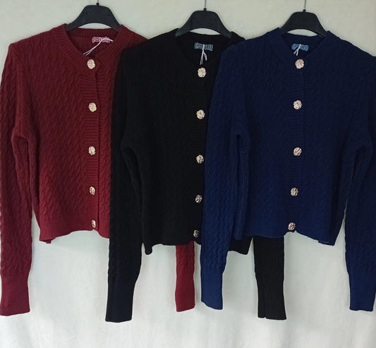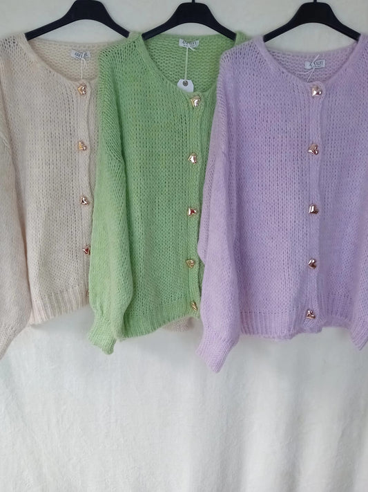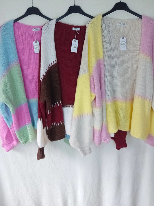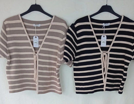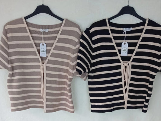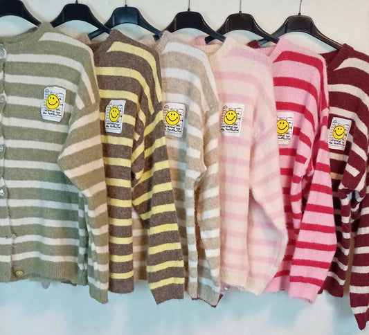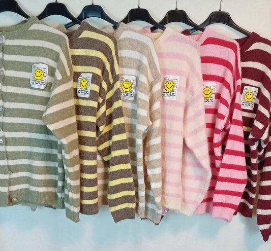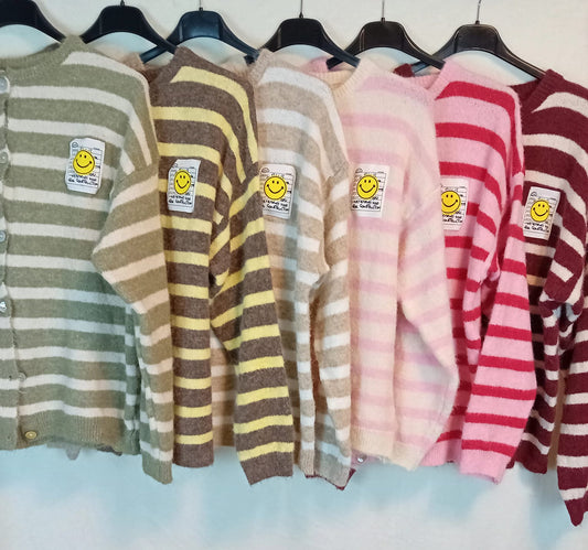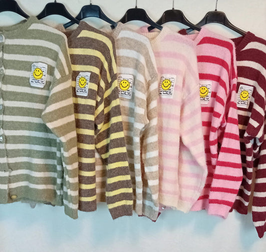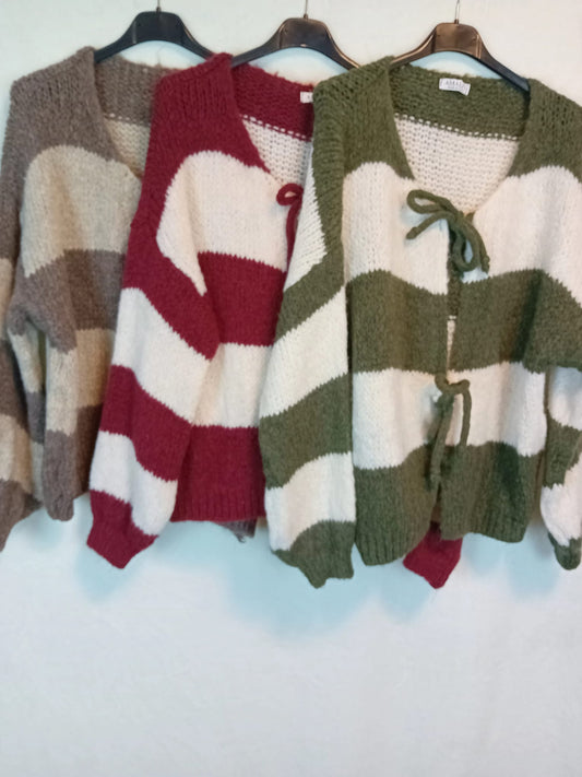 Strickjacke- Wide Stripes- Khaki/ Weiß