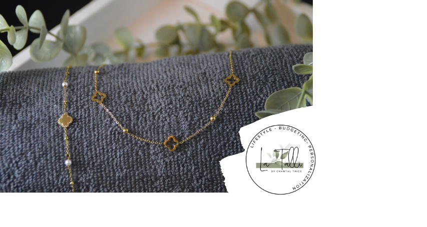 Die Kette „Klee“ besteht aus Edelstahl und ist in Gold und Silber erhältlich.
